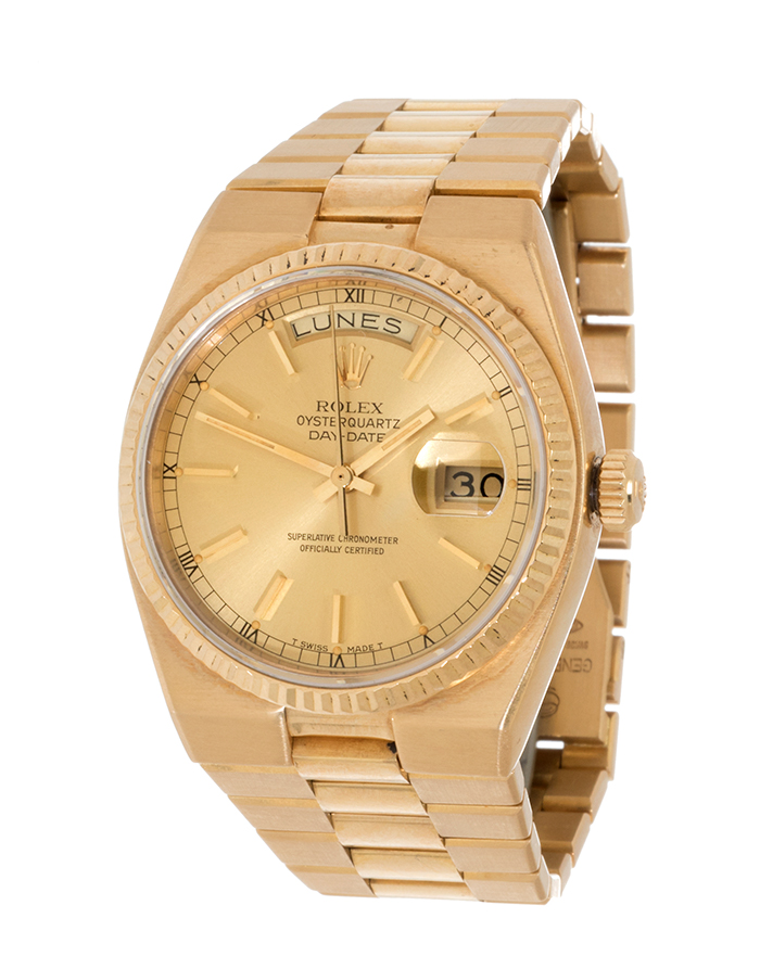 Within Jacob Elordi’s watches we also find references to Rolex, such as the Rolex Oyster Perpetual Day-Date in yellow gold, known as the “President’s Watch”. This historic model was the first automatic chronometer to display the complete day and date, and represents one of the most recognizable pieces of the Swiss firm.