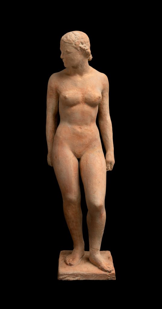 Frente a esta intensidad, Charles Despiau desarrolla una poética de la contención dentro de la escultura europea del siglo XX. Su obra se caracteriza por la depuración del gesto y la búsqueda de una serenidad esencial, en la que la figura humana se convierte en presencia silenciosa y de gran claridad volumétrica.